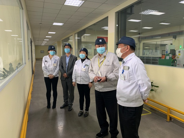 圖為東洋電裝森田總經(jīng)理一行參觀寧波天龍現(xiàn)場(chǎng)的圖示照片: